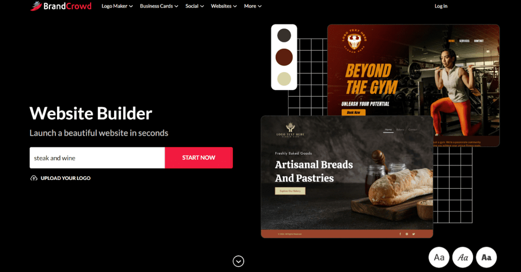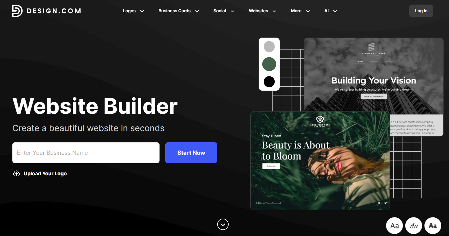 Before you build your business website, you need a visual identity that makes you stand out—and that starts with a logo. Design.com Website Builder is an AI-powered branding tool that helps small business owners create professional logos and brand assets in just a few clicks. Whether you’re launching a new brand or rebranding an existing one, Design.com provides an easy-to-use platform to craft a polished and consistent brand image without hiring a designer.