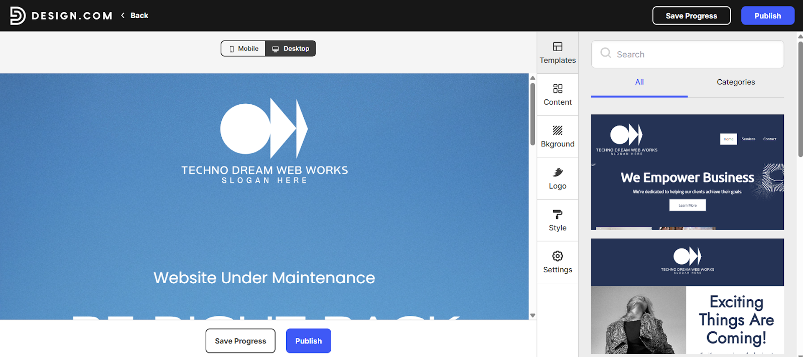 Every template you create is mobile-friendly, ensuring your website looks good across all devices.